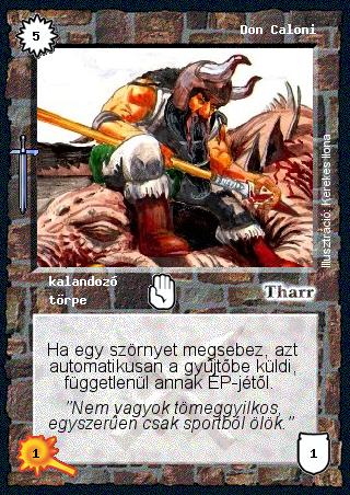 Kiadás: Hőskorszak, Védnök 2021 Gyakoriság: ritka Lapszín (isten): Tharr Típus: kalandozó Altípus: törpe Szöveg: Ha egy szörnyet megsebez, azt automatikusan a gyűjtőbe küldi, függetlenül annak ÉP-jétől. Szinesítő szöveg: "Nekünk nem maradt más, csak a Becsület..." Illusztráció: