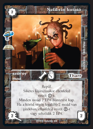 Nefil-rin kutató (7): Az eddig nem igazán létezett moa pakli talán végre kitalált magának egy elég jó, szervező erőként működő lapot. A büntetés segíthet a gyors győzelemben. A manapusztítós képesség (mind a kijátszáskori, mind a kör végi) igazi áldás lesz, remekül kombinálható a Naso-tin nagyúrral meg a többi, víg moa legénnyel. Aztán az egész moa csapat mellől ne hagyjuk ki a Tharr bűbáját, a költségükben gyakran szereplő nekron miatt nagyon jól ki lehet használni.
