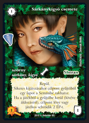 Sárkánykígyó csemete (7): A legkisebb sárkányfi önmagában nem túlzottan erős, pakliba biztosan nem raknám be. Egyedüli létjogosultsága a lapnak, hogy előmászik az elhullott Ifjú sárkánykígyóból. Valószínűleg máshogy nem is fogunk vele találkozni.